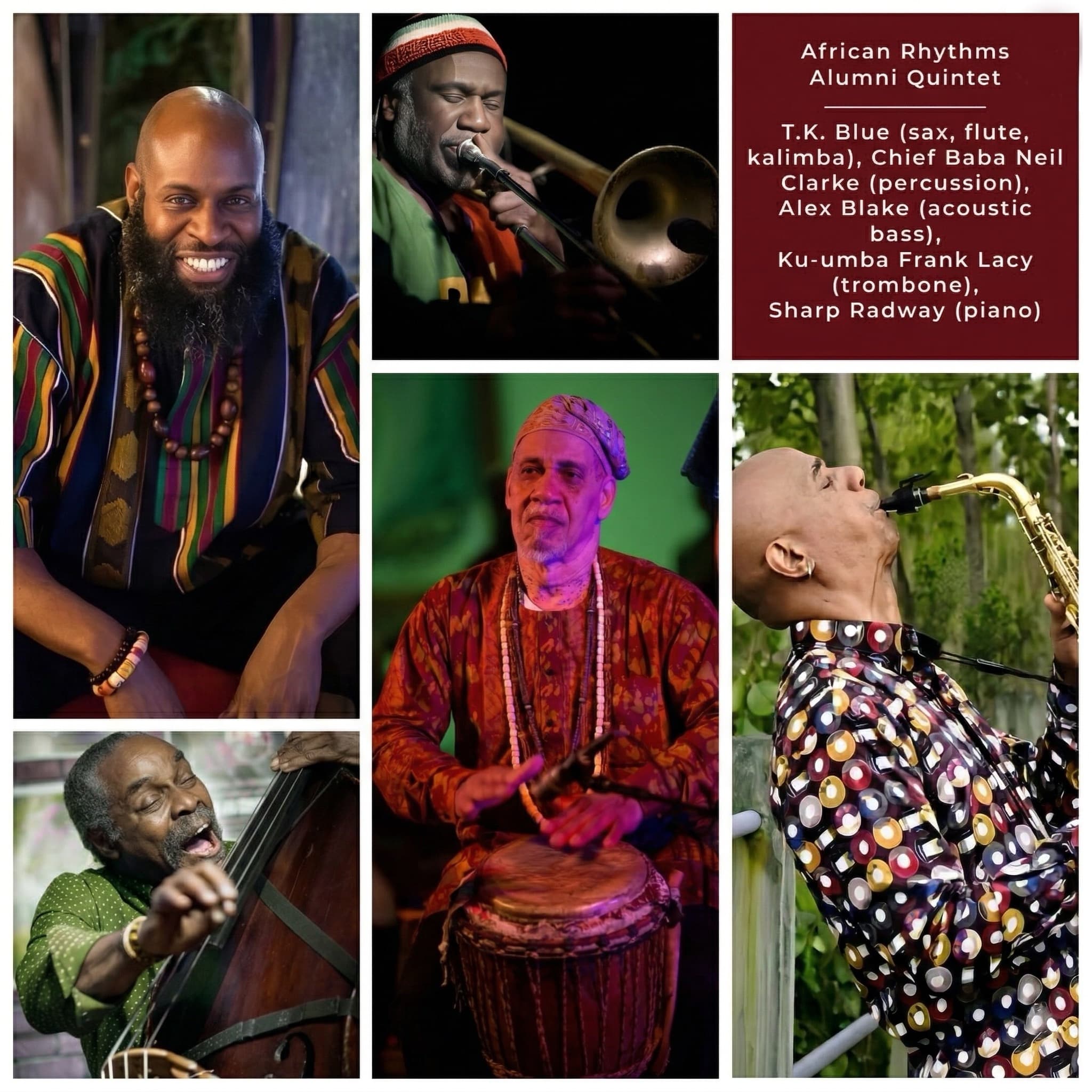 SFJAZZ and MoAD are proud to co-present an intimate performance and conversation with the African Rhythms Alumni Quintet on Saturday, April 11th at 1pm. Highlighting the legacy of legendary pianist and NEA Jazz Master Randy Weston, the Alumni Quintet celebrates Weston’s vital contributions to the jazz continuum by bringing his compositions and arrangements to the stage. The ensemble members—all of whom share a close and long-term relationship with Weston—transmit “the very spirit” of Weston’s music. We are thrilled to welcome T.K. Blue (saxophone, flute and musical director), Chief Baba Neil Clarke (percussion), Alex Blake (bass), Ku-umba Frank Lacy (trombone), and Sharp Radway (piano) to share the timeless legacy of Mr. Randy Weston!